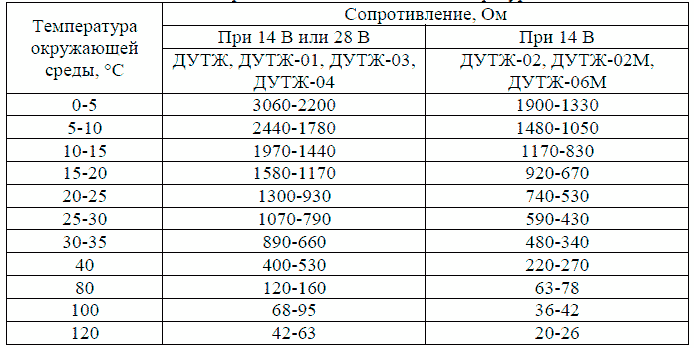 Если величины сопротивления существенно отличаются от указанного в таблице 6, датчик необходимо заменить.