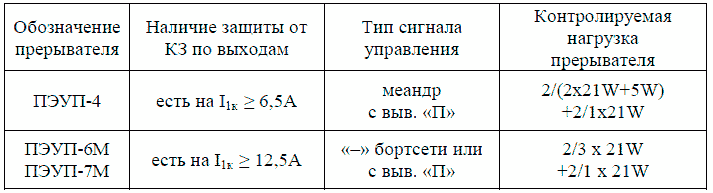 Мощности указательных по цепям ПТ и ЛТ выбираются по 3 шт. 21 Вт для ПЭУП-6М (7М), по 2 шт. 21 Вт + 1 шт. 5 Вт для ПЭУП-4.
