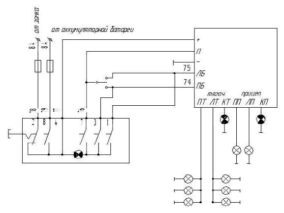 Подать поочередно на контакты ЛБ и ПБ «-» источника питания (при проверке по схеме 4) или сигнал «П» с прерывателя (при проверке по схеме 2 или 3).
