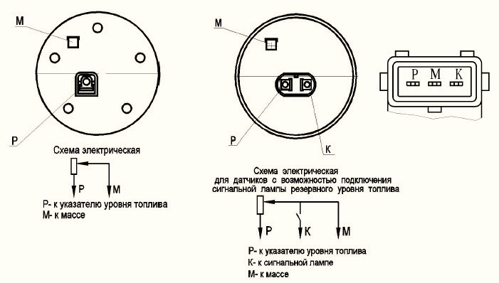 Расположение контактов и электрическая схема датчиков.