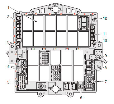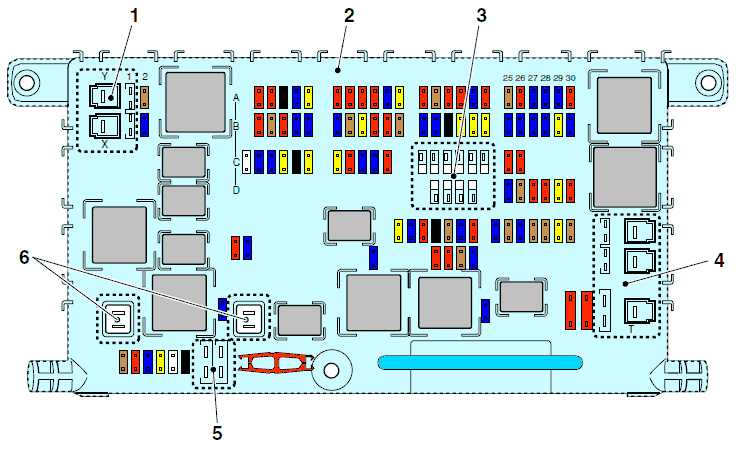 - D: Блок предохранителей D, (D400, верхняя сторона).