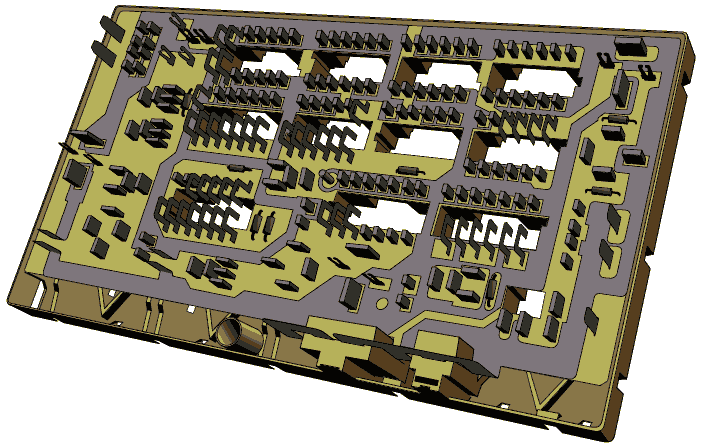 Внутри центрального блока на печатной плате провод 1000 подсоединяется к трем дорожкам