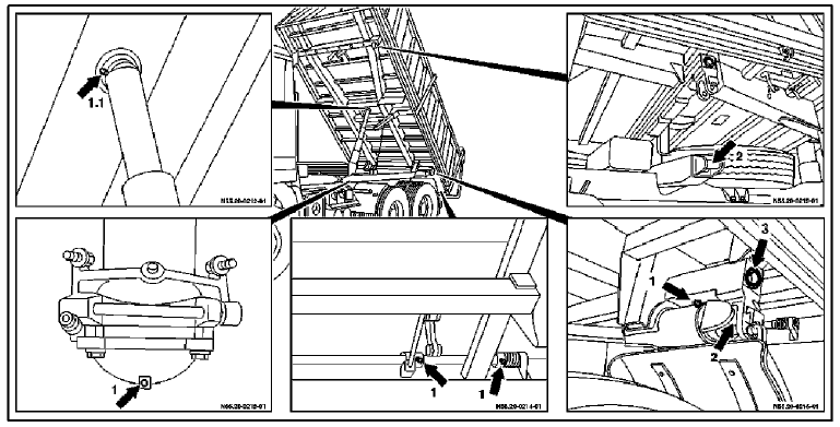 - Система опрокидывания кузова – проверить работоспособность, зазор и крепление