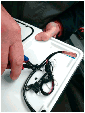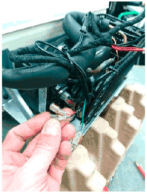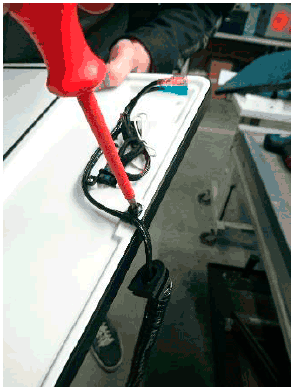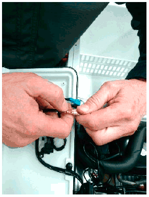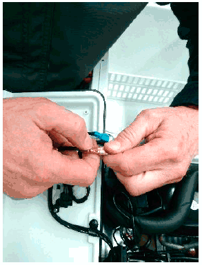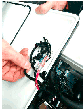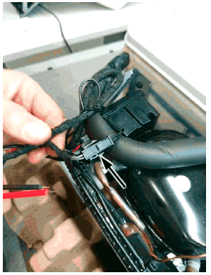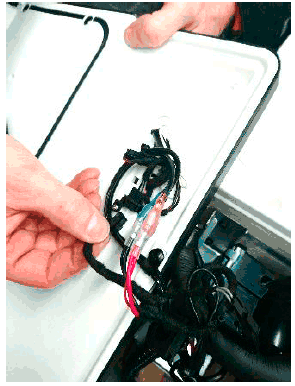 Отсоедините кабели вентиля-тора (тонкий красный и черный кабели).