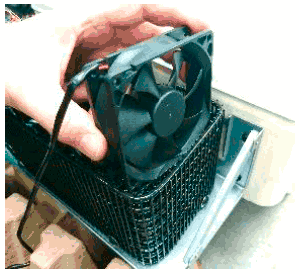 Закрепите новый вентилятор с помощью четырех резиновых держателей.