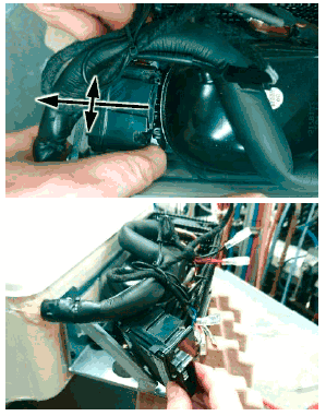 Отсоедините электронный блок компрессора кондиционера и извлеките из-под всасывающей линии, слегка раскачивая его в разные стороны.