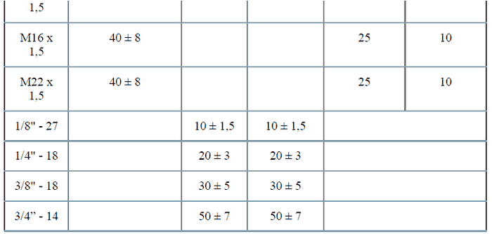 Для хомутов на шлангах рекомендуются следующие моменты затяжки