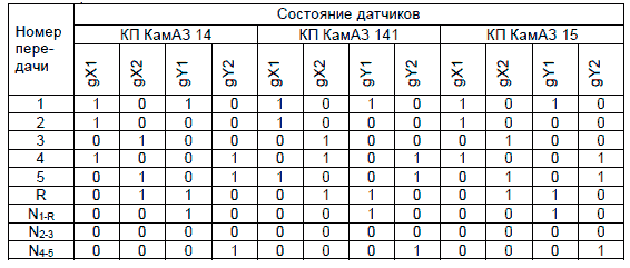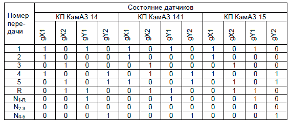 Команда на включение той или иной передачи формируется при перемещении рукоятки ЗРД. Выбранная передача в ЗРД определяется четырьмя датчиками «Холла» с выходом типа «открытый коллектор» в соответствии с таблицей ниже.