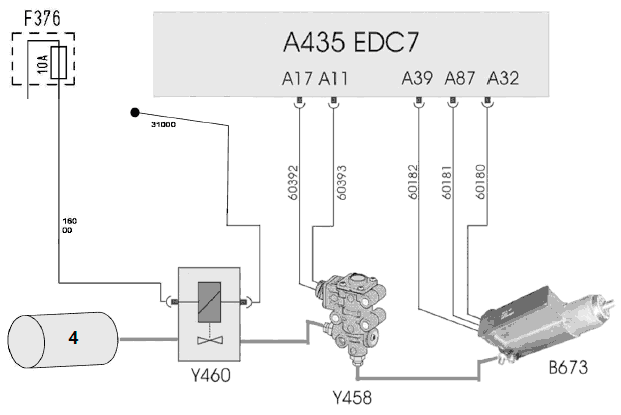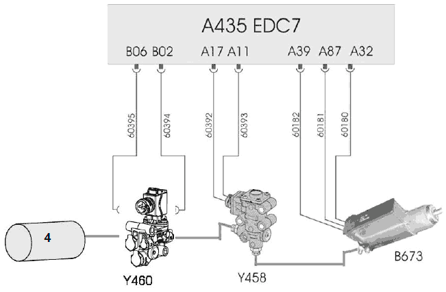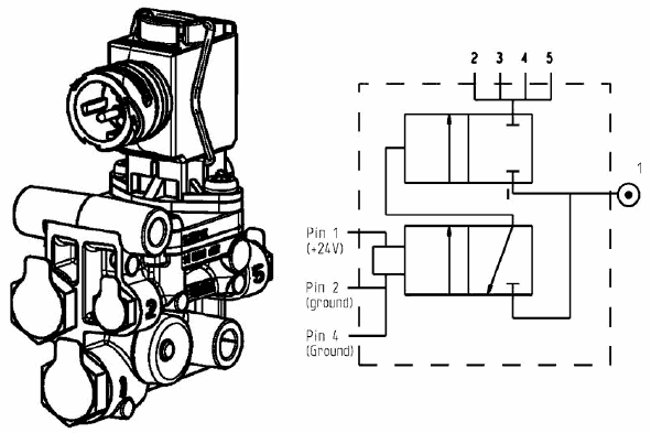 Нагнетательный отключающий клапан (Y460) -это 3/2-ходовой клапан, закрытый в обесточенном состоянии. Он подает сжатый воздух на пропорциональный клапан (Y458). Это предотвращает утечку сжатого воздуха через пропорциональный клапан Y458.