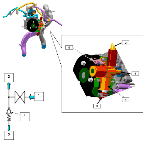 Запорный / редукционный клапан для низкотемпературного радиатора управляется блоком управления EDC7, он открыт в обесточенном состоянии.