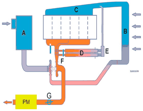 При рециркуляции ОГ часть сгоревших газов еще раз добавляется в смесь в цилиндре (около 10% Euro 3 и до 20% Euro 4, в двигателях Euro 5 это значение доходит до 30%).