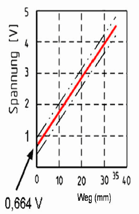Графическая характеристика датчика смещения исполнительного цилиндра („V“ закр.“ мм“)