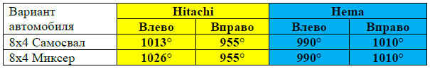 Регулировка ограничения осуществляется различными способами в соответствии с установленным на автомобиле рулевым механизмом. Следующие значения угла из Таблицы ниже. должны использоваться для рулевых механизмов HEMA и Hitachi при регулировке ограничения.