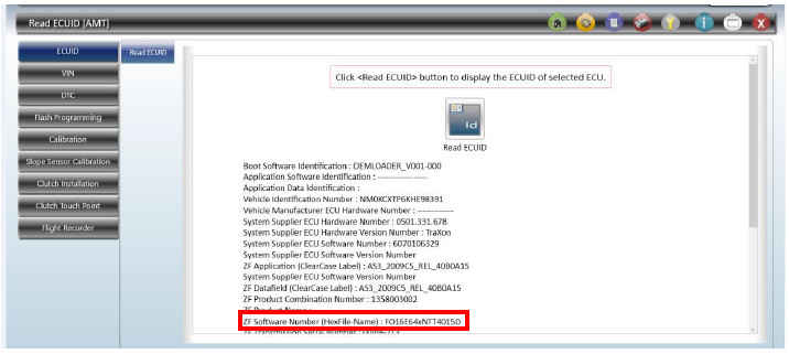 - Проверьте правильность версии программного обеспечения коробки передач в разделе ECUID блока AMT.