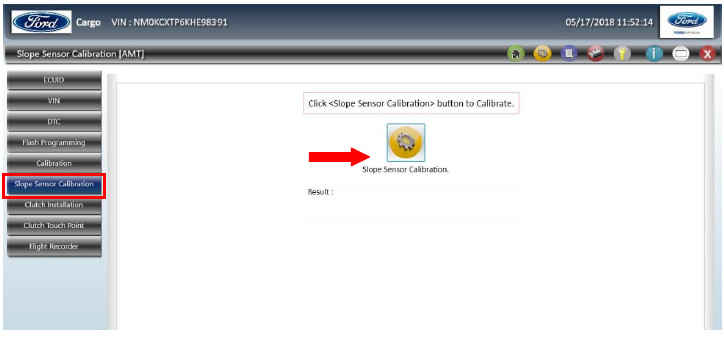 - Откалибруйте датчик наклона автомобиля, нажав кнопку «Slope Sensor Calibration» в разделе «Slope Sensor Calibration» блока AMT.