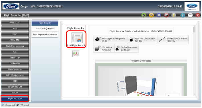- Проверьте параметры работы сцепления в регистраторе эксплуатационных данных автомобиля в блоке EMS, нажав кнопку «Read Flight Recorder» в разделе «Flight Recorder».