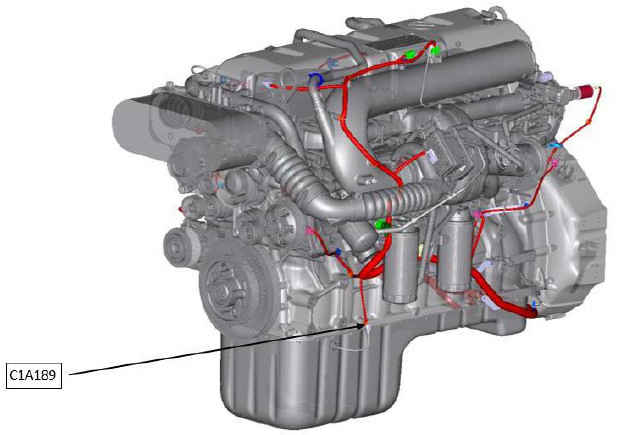 Схема расположения разъема C1E114, соединяющего кабель датчика уровня масла ДВС и блок управления двигателем