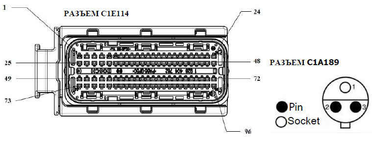 Разъем C1E114, соединяющий кабель датчика уровня масла ДВС и блок управления двигателем