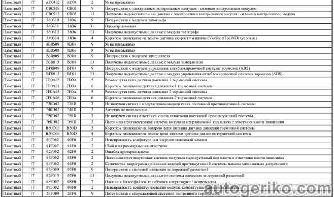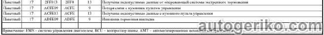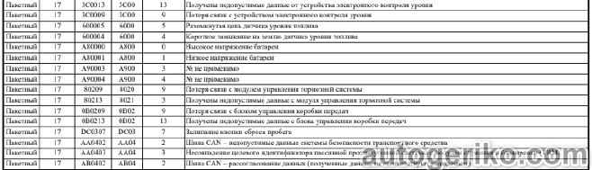 Описание остальных кодов неисправностей FORD CARGO