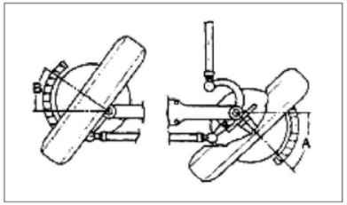 Значение этого угла соответствует углу поворотного шкворня по отношению к вертикальной оси. Как вы понимаете, угол развала передних колес и угол поперечного наклона поворотного шкворня нельзя отрегулировать. Но, тем не менее, их необходимо проверять, чтобы удостовериться, что они