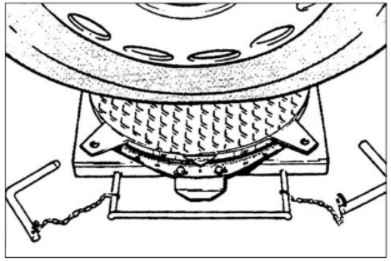 Удостоверьтесь, что стопорные штифты высокопрочных поворотных дисков на месте и установите поворотные диски под передние колеса. Установите автомобиль на поворотные диски так, чтобы передние колеса стояли вертикально.