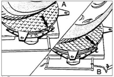 Проверьте прямолинейность передних колес и удалите из поворотных дисков стопорные штифты. Установите градуированную шкалу в нулевое положение.