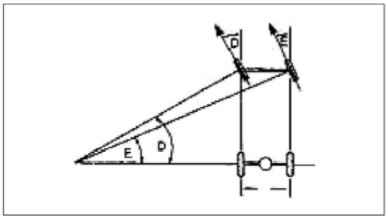 Угол отрицательного схождения передних колес = Угол «D» - Угол «Е»