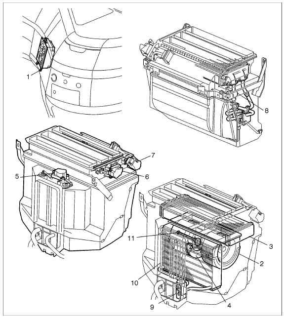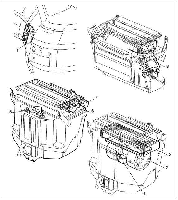 7 Шаговый двигатель регулирует заслонку смешивания воздуха и, соответственно, часть воздуха, который поступает прямо от кондиционера, минуя теплообменник.