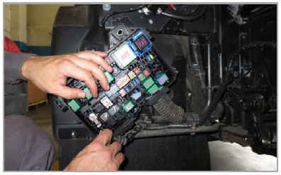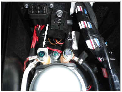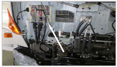 Подключить красный (+) провод предпускового подогревателя Hydronic к плюсовой клемме внутри монтажного блока автомобиля, располагающегося на раме шасси справа по ходу движения авто