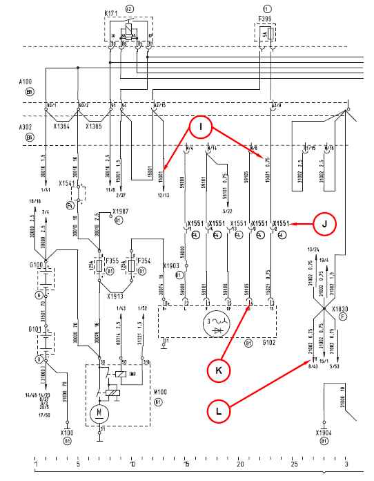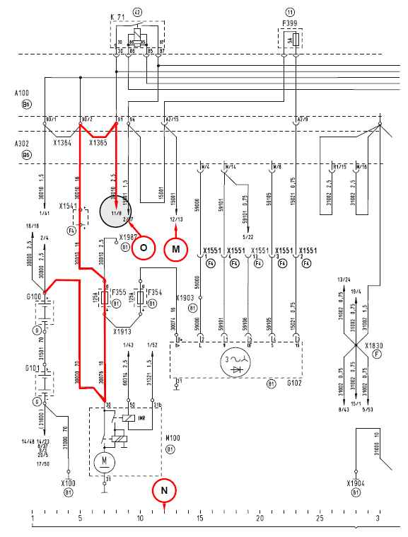 В этих сведениях указывается страница электрической схемы и, через косую черту, электроцепь M. Если этот провод продолжается на нескольких страницах, то ссылка содержит сведения для нескольких страниц/электроцепей.