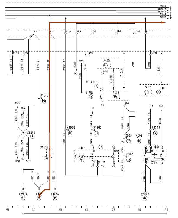 Код в примере 111, означает: в этой электрической схеме используется предохранитель с кодом 111. Принадлежность кода номеру запчасти может быть перекодирована с помощью инструкции по ремонту T60, MAN-Cats® 1 и 2.