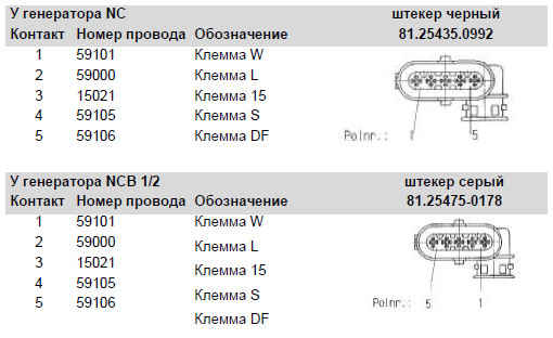 Генераторы NCB имеют другое расположение разъемов в отличие от старых генераторов NC, это значит, что внешние контакты в разъеме на генераторе повернуты на 180° и могут быть распознаны по цвету на сером разъеме.