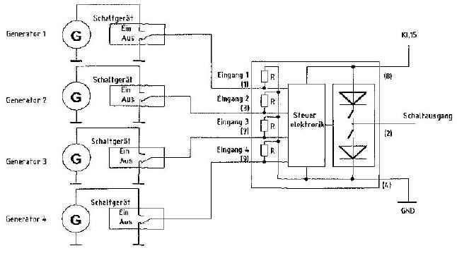 Так, как в автобусе чаще всего установлено несколько генераторов, диагностика реализуется с помощью реле генератора. При этом клемма L каждого генератора подводится к реле K 1156 в качестве входа только после того, как на все входы будет подан плюс, реле K 1156 включает сигнал на ZBR 2, разъем M, контакт 4.