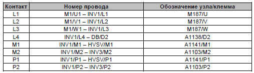 Высоковольтные кабели подключаются к разъемам L1 – P2. Штекер разъемного соединения X2 – это связь с тяговым электродвигателем 1 (M187). По экранированному кабелю данные управления передаются двигателю.