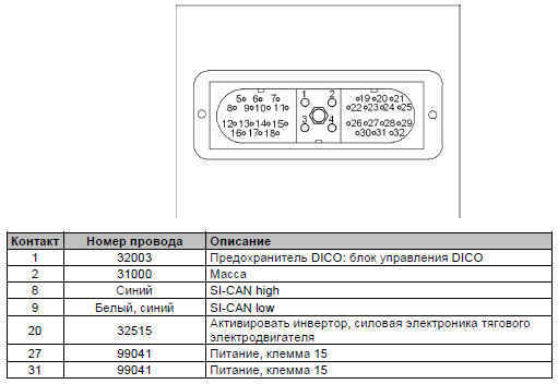 Инвертор тягового электродвигателя 1 (A1101) работает в гибридной системе как регулятор тока для задания крутящего момента и контролирует приводной электродвигатель (M187). Для охлаждения используется вторичный контур охлаждения. Инвертор тягового электродвигателя 1 (A1101) сообщает по шине SI-CAN блоку управления DICO (A608) о возникающих кодах диагностики.