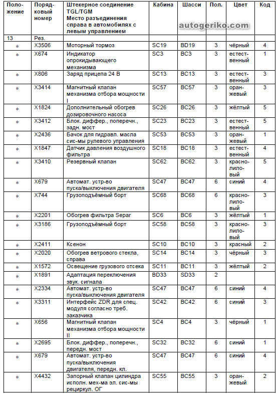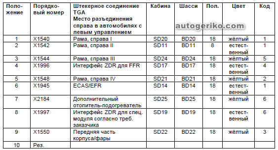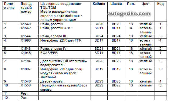 Место разъединения справа в грузовиках TGL/TGM с левым управлением