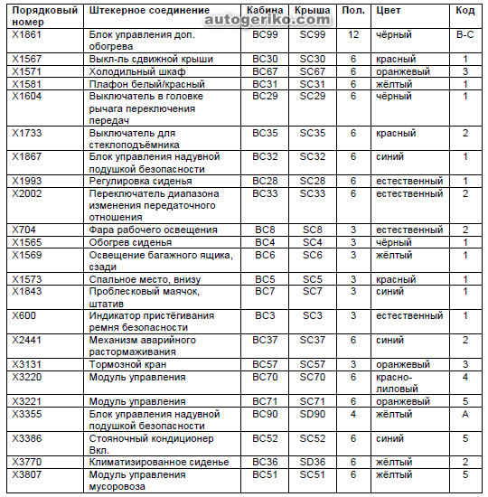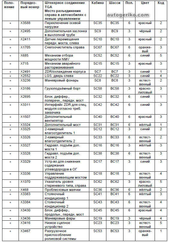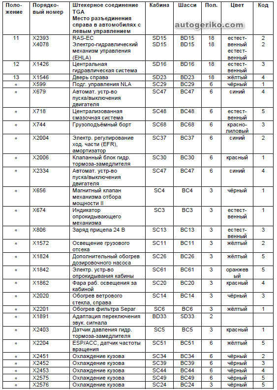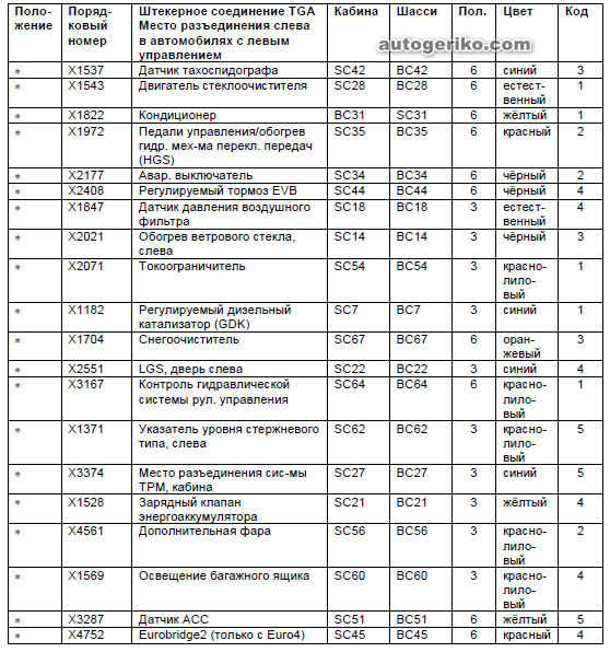 Перечень мест разъединения проводов в автомобилях TG