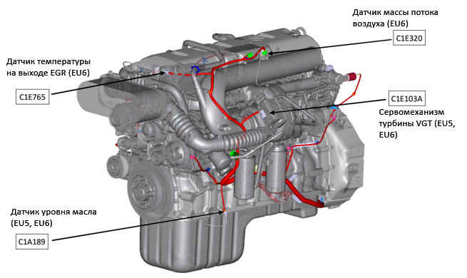 Датчик температуры на выходе EGR Temperature Sensor (EGRT)