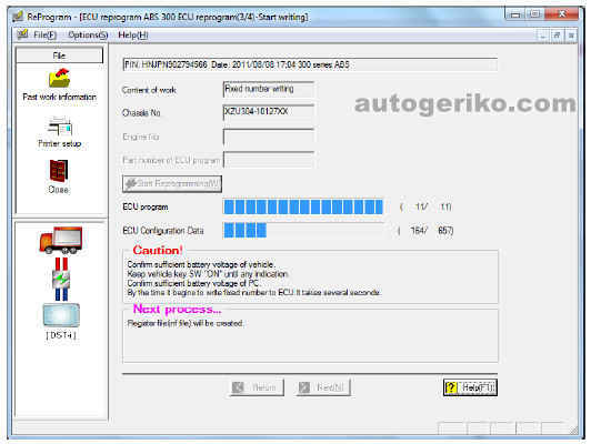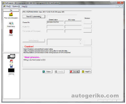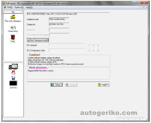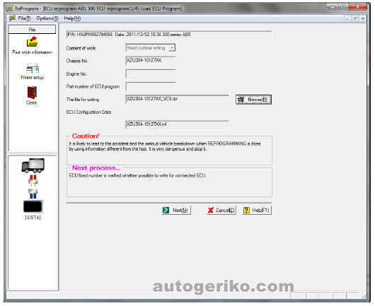 1) Запросить у отдела сервисного обслуживания представительства файл с программным обеспечением. При этом необходимо сообщить 17 символов номера шасси автомобиля, на котором производится замена блока управления АБС.