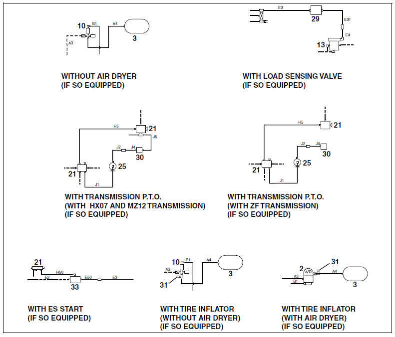 Air charging system Air charging is from piston type air compressor and air flow is directed and controlled by a pressure regulator, the necessary valves, and lines as required.