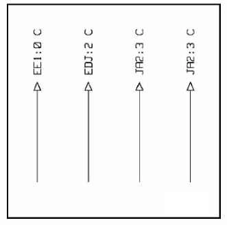 В том случае, когда послепродажный код не окаймлен, (индекс (2) при сём приведённого примера), он обозначает один из составных узлов одного единственного токоприёмника. Он тогда находится внутри соответствующего обозначающего символа.