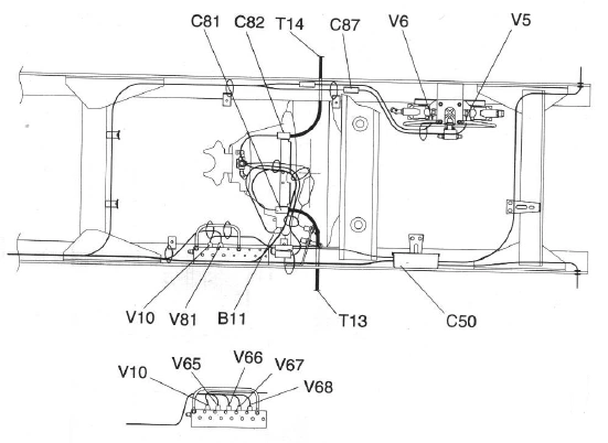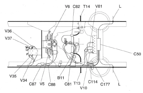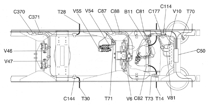 Расположение электрических компонентов на шасси показано на следующих схемах.