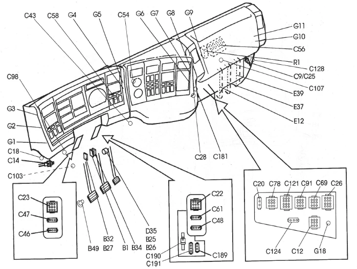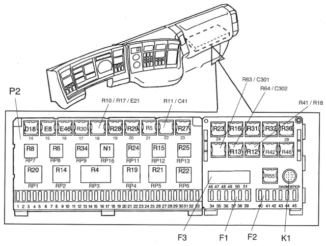 Компоненты центрального электрического блока располагаются идентично для автомобилей, как с