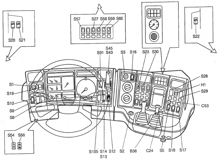 правосторонним рулевым управлением компоненты с правой стороны переносятся на левую сторону и наоборот. Однако расположение компонентов относительно друг друга остается без изменения.