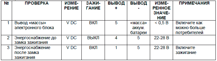 4. При возникновении неисправностей, прежде всего, проверьте соединения энергопитания и «массы» электронного блока.