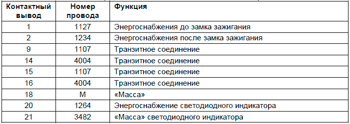 Контактные выводы электронного блока иммобилайзера LF45/55