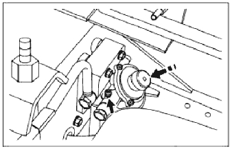 - Проверьте наличие воздуха в поступающем топливе, ослабив соответствующий болт (отмечен стрелкой на рисунке).