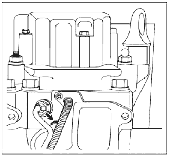 - Отсоедините обратный топливопровод от клапана (обозначен стрелкой на рисунке).