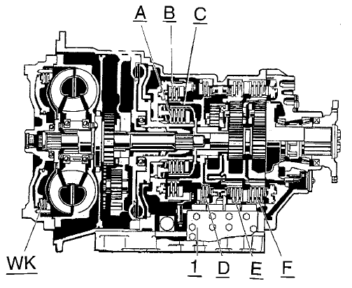 A - F и WK - это сцепления для различных передач.