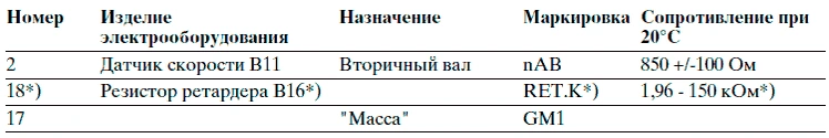 Датчик частоты вращения вторичного вала и резистор ретардера